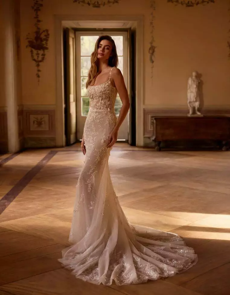 Maak jouw totaal plaatje helemaal compleet met onze bijpassende bruidsaccessoires, zoals bruidssluiers met kant of parel bewerking, handschoenen, bruidsschoenen en haaraccessoires.
