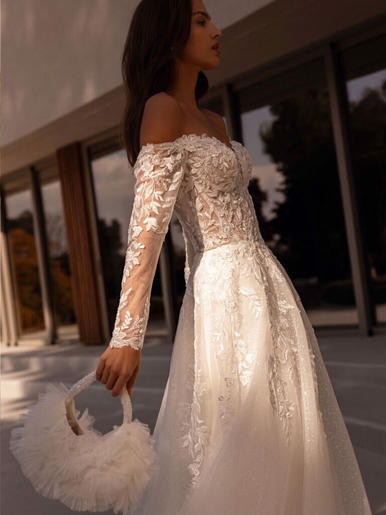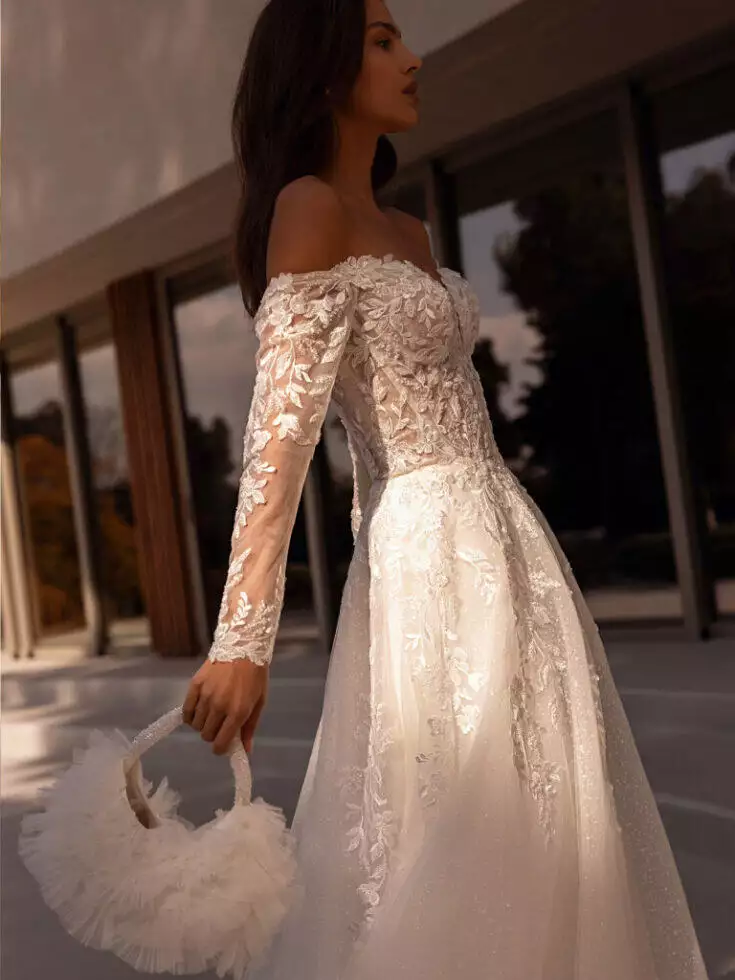 Maak jouw totaal plaatje helemaal compleet met onze bijpassende bruidsaccessoires, zoals bruidssluiers met kant of parel bewerking, handschoenen, bruidsschoenen en haaraccessoires.