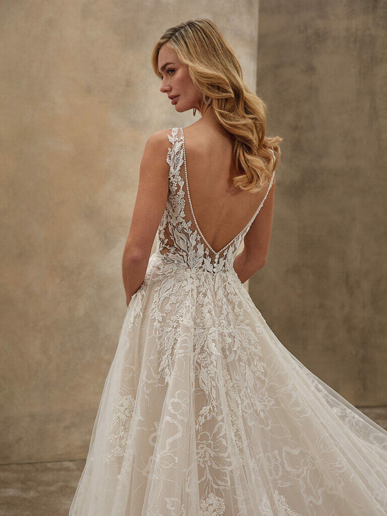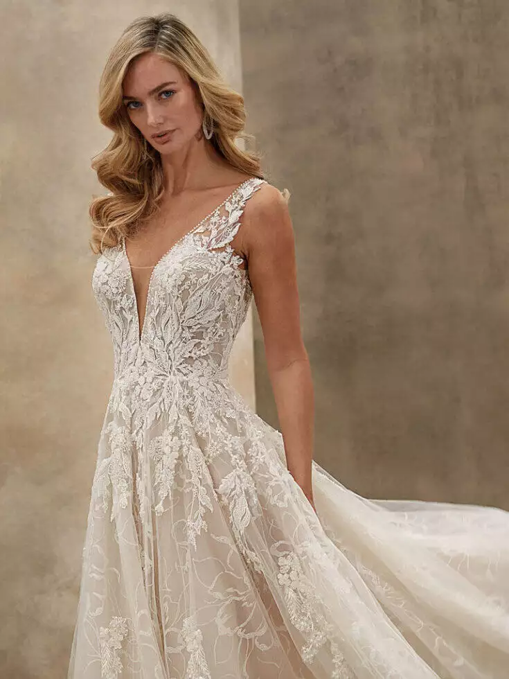 Maak jouw totaal plaatje helemaal compleet met onze bijpassende bruidsaccessoires, zoals bruidssluiers met kant of parel bewerking, handschoenen, bruidsschoenen en haaraccessoires.