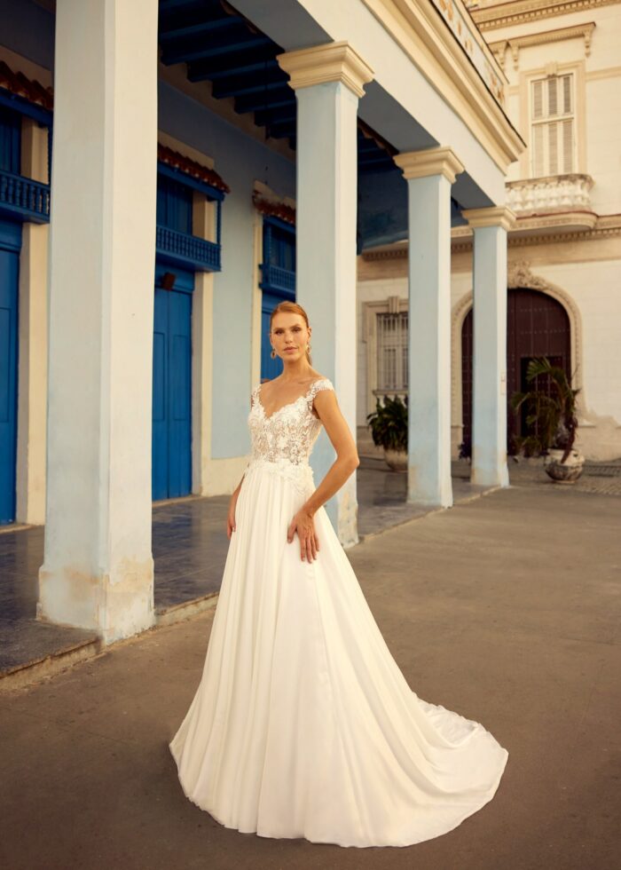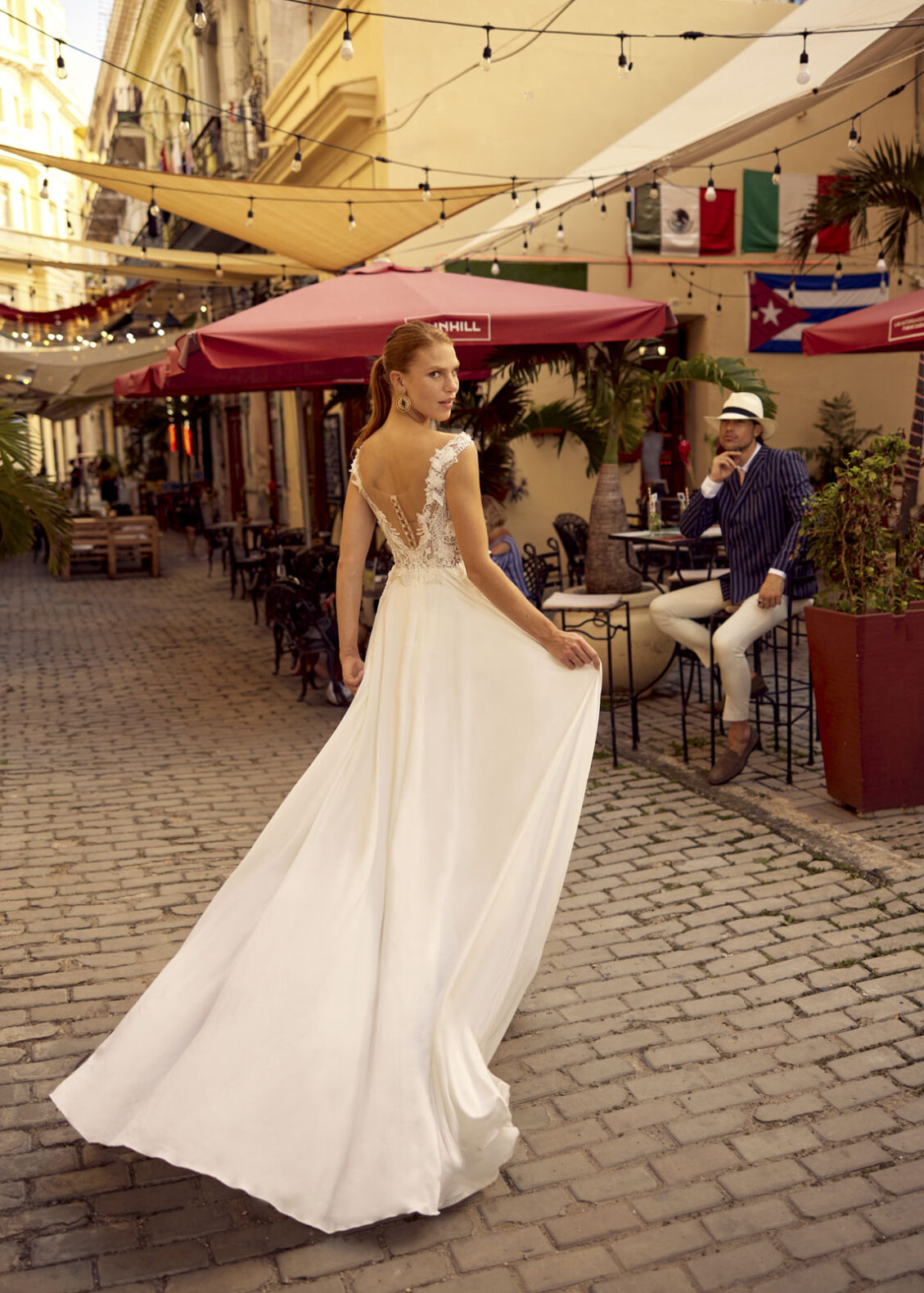 De trouwjurk ‘Leni’ van Hervé Paris straalt bohemian charme en verfijning uit, perfect voor een romantische en ontspannen bruiloft. Met prachtige details zoals luchtige stoffen en een sierlijk silhouet, is deze jurk ideaal voor de bruid die haar grote dag wil vieren in een intieme, natuurlijke setting. Creëer een sfeer van moeiteloze elegantie en persoonlijke stijl met deze unieke bruidsjurk.