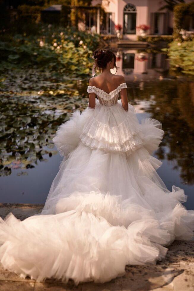 Maak jouw totaal plaatje helemaal compleet met onze bijpassende bruidsaccessoires, zoals bruidssluiers met kant of parel bewerking, handschoenen, bruidsschoenen en haaraccessoires.
