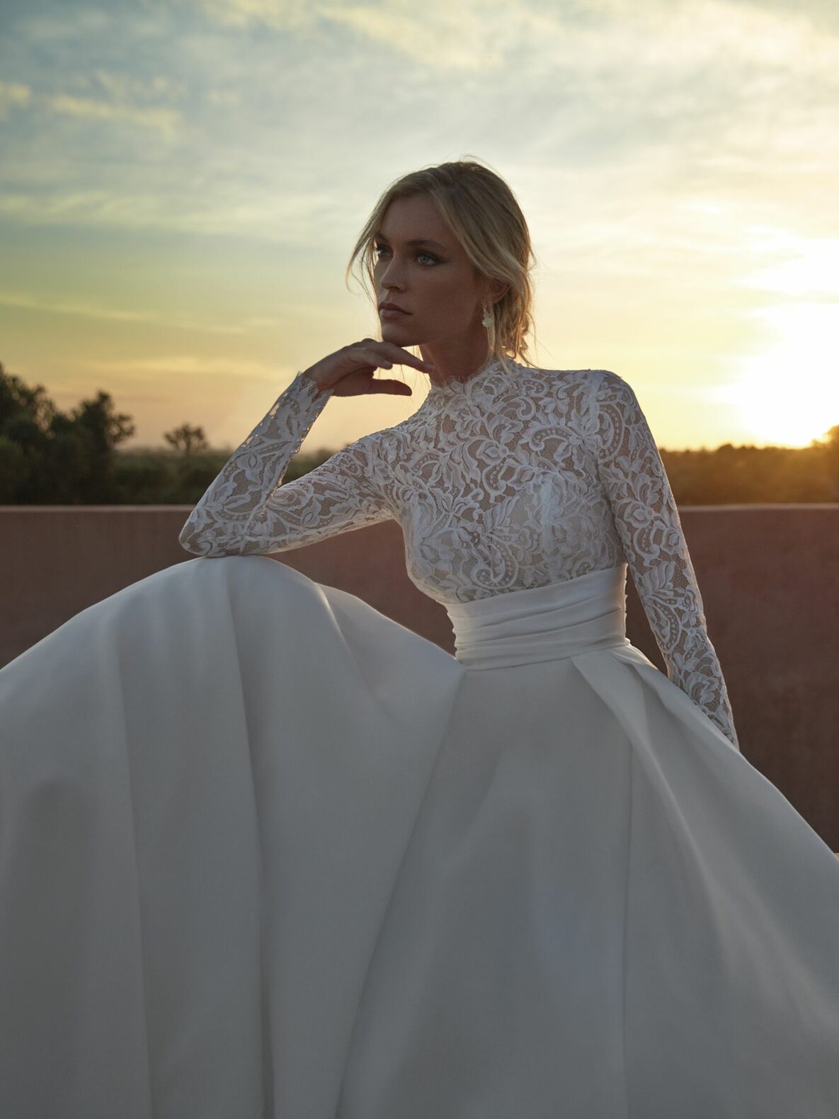 Ontdek de romantische elegantie van de ‘Ceeylo’ trouwjurk uit de Pronovias-collectie. Deze simpele maar verfijnde prinsessen jurk combineert een hooggesloten kanten lijfje met lange mouwen voor een tijdloze, vrouwelijke look. De wijde organza rok voegt een vleugje dromerigheid toe, perfect voor de bruid die op zoek is naar een romantische uitstraling. Ideaal voor een klassieke en romantische bruiloft, de ‘Ceeylo’ biedt een harmonieuze balans tussen comfort en stijl, gemaakt van luxe materialen die zorgen voor een onvergetelijke entree op jouw grote dag.