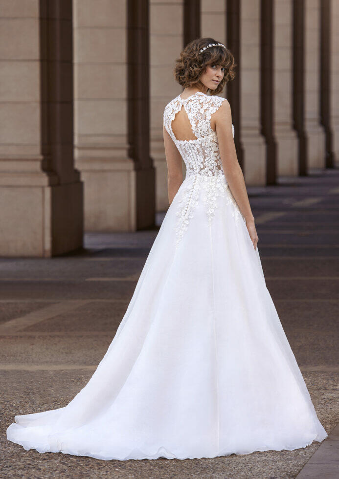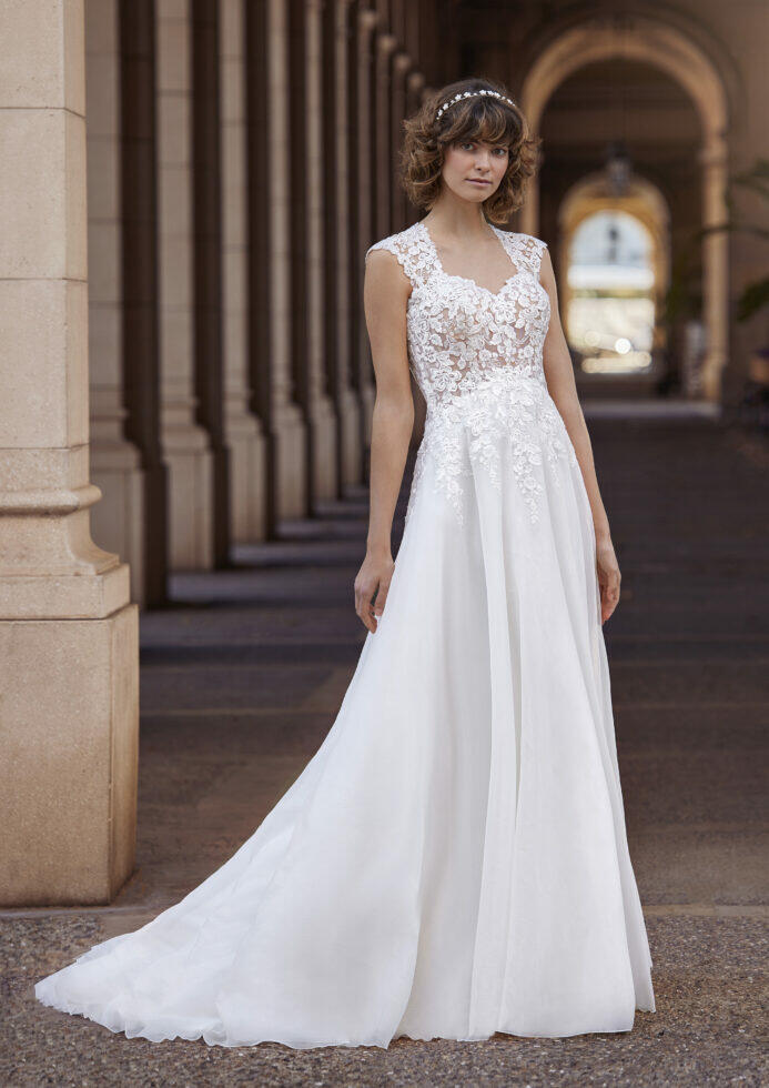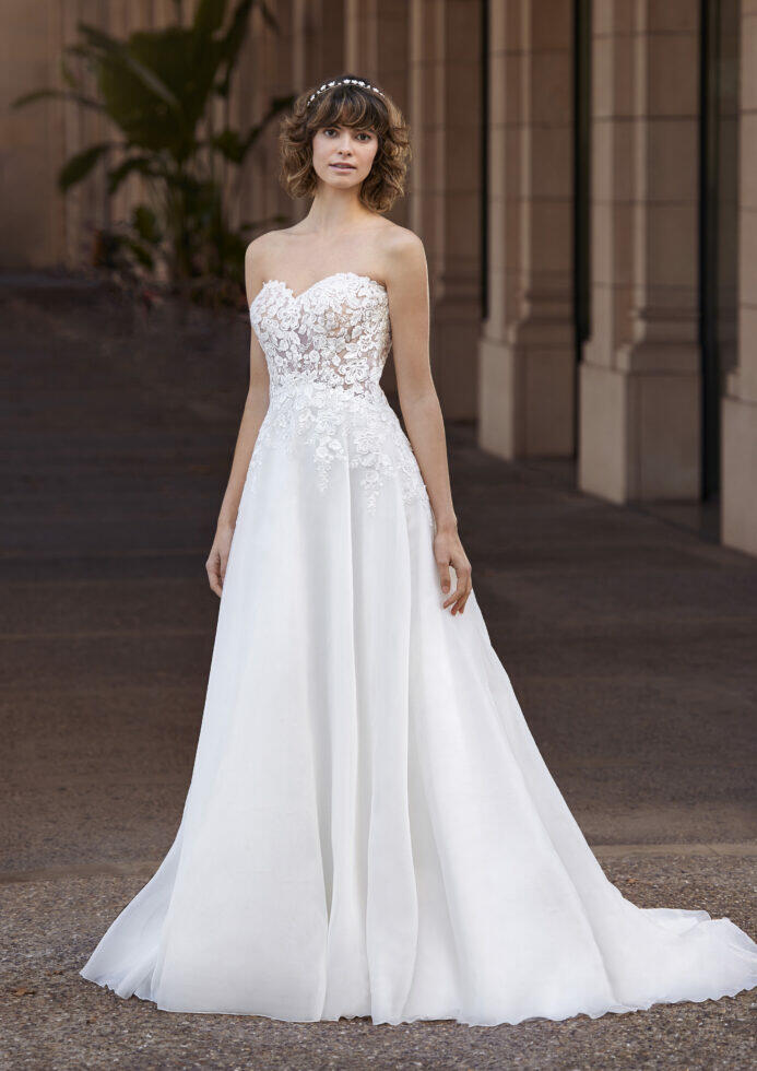 Model Satiny uit de White One Pronovias collectie is prachtige off-the-shoulder trouwjurk met een kanten lijfje met lovertjes en een A-lijn rok van organza. Met een korset rug die een sensuele silhouet creëert. Deze trouwjurk heeft een afneembare kanten schouder bandjes die je schouders en boven rug bedekt, waardoor deze jurk perfect is voor zowel de ceremonie als de receptie en wanneer jullie klaar zijn voor het trouw feest eraf gehaald kan worden met transparante drukkertjes, waardoor je in een oogwenk een hele andere trouwjurk creëert.