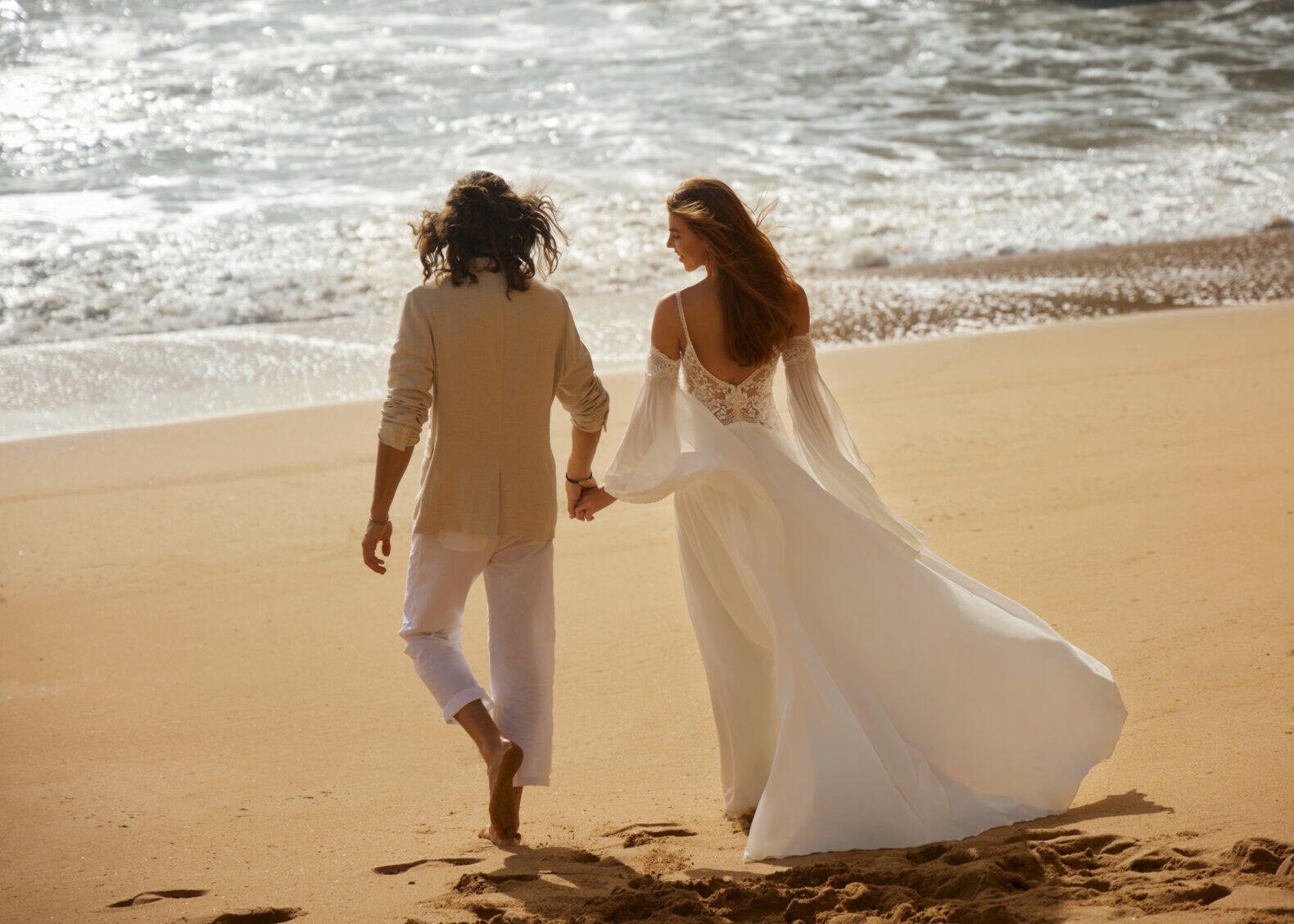 Als je hebt gekozen voor een romantische strandbruiloft met zand tussen je tenen en het geluid van de golven op de achtergrond, wil je een trouwjurk die gemakkelijk en luchtig ontdekken. Kies voor een kanten trouwjurk met een eenvoudige A-lijn of een zwierige zeemeerminnenrok. Lichtgewicht kanten stoffen zoals Chantilly of guipure kant zijn geweldige keuzes voor een strandbruiloft, omdat ze comfortabel zijn en goed passen bij de informele sfeer.